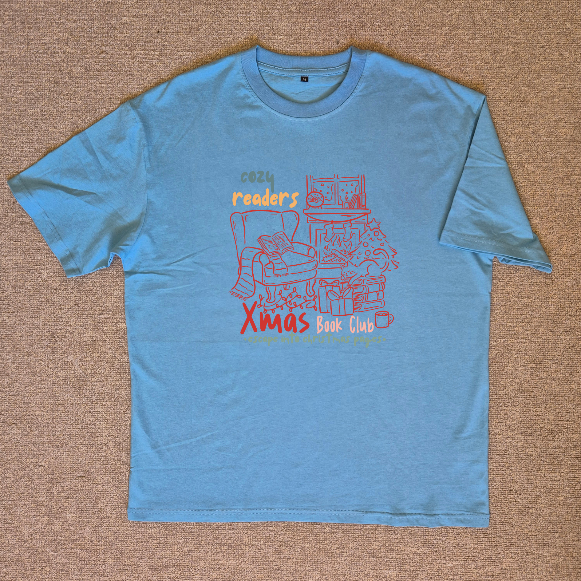 Calling all bookworms and comfort enthusiasts! This oversized tee is your new reading buddy, featuring bold, easy-to-read large print that celebrates your love of cozy book clubs. The relaxed fit is perfect for curling up with your latest page-turner, while the playful design keeps your vibe fun and unapologetically you. Whether you're hosting book night or just vibing solo with a good story, this tee delivers maximum comfort with maximum personality.